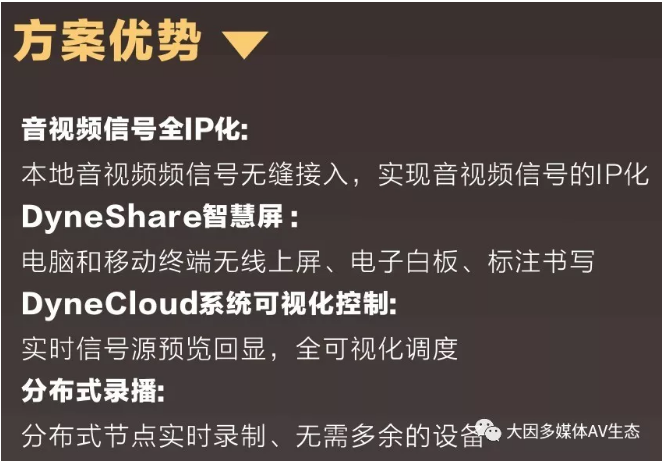 教室是學校最常見的場所,但是教室的大小、用途、使用人(教室和學生)卻不盡相同。雖然有所區別,但每間教室授課時所需要的音視頻系統非常類似。此類音視頻系統的建設必須方便教師的使用,而且也要滿足學生清晰明了地觀看和聆聽上課內容,老師上課的內容和分析方便學生打包帶走。不僅如此,系統的使用必須簡單,方便教師和學生的獨自使用。
