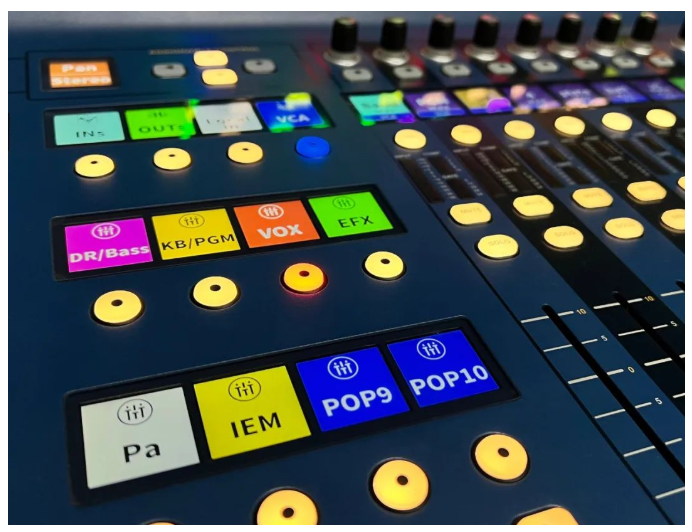 不僅如此,余老師在這場活動(dòng)對(duì)于HD96-24的POP編組尤為歡喜。因?yàn)榇舜位顒?dòng)是PA、MONITOR和OB三位一體,所以調(diào)試工作就變得繁瑣,而HD96-24繼承了MIDAS調(diào)音臺(tái)獨(dú)有的POP編組功能,可將所有通道根據(jù)使用習(xí)慣隨意布局在不同推子層上,再配合上精確的多點(diǎn)觸控顯示屏,讓調(diào)音師能隨意地進(jìn)行通道切換,減少許多繁瑣的工作步驟。