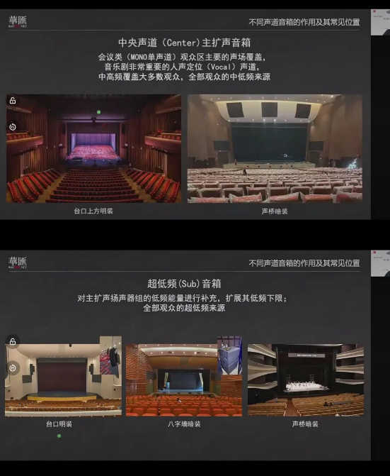 ·效果聲(Surround)音箱,主要播放有運動軌跡的音效,為觀眾帶來環繞聲或頂棚效果聲。